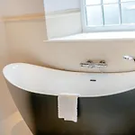 Tot de badkamerfaciliteiten behoren ook een apart toilet en een wasmachine. Een haardroger en handdoeken zijn inbegrepen voor extra comfort.